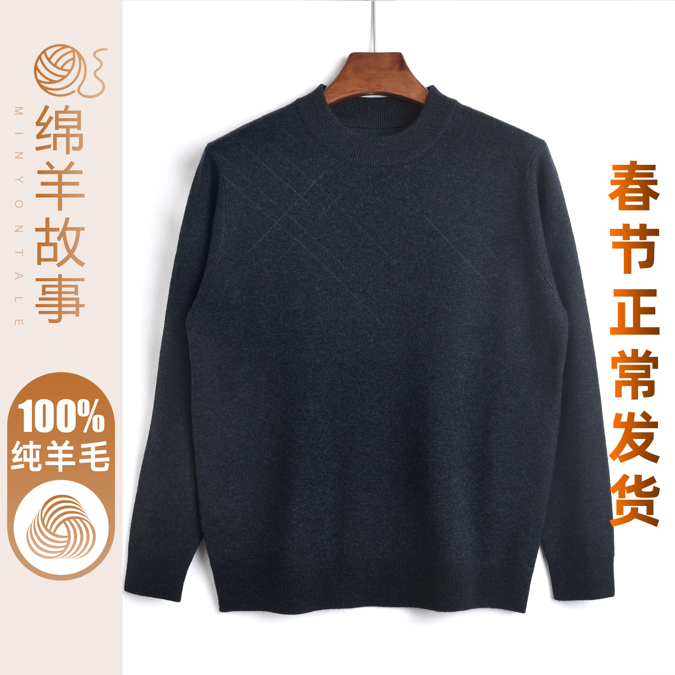 中年爸爸装100纯羊毛衫冬季新款半高领加厚针织衫宽松打底毛衣男