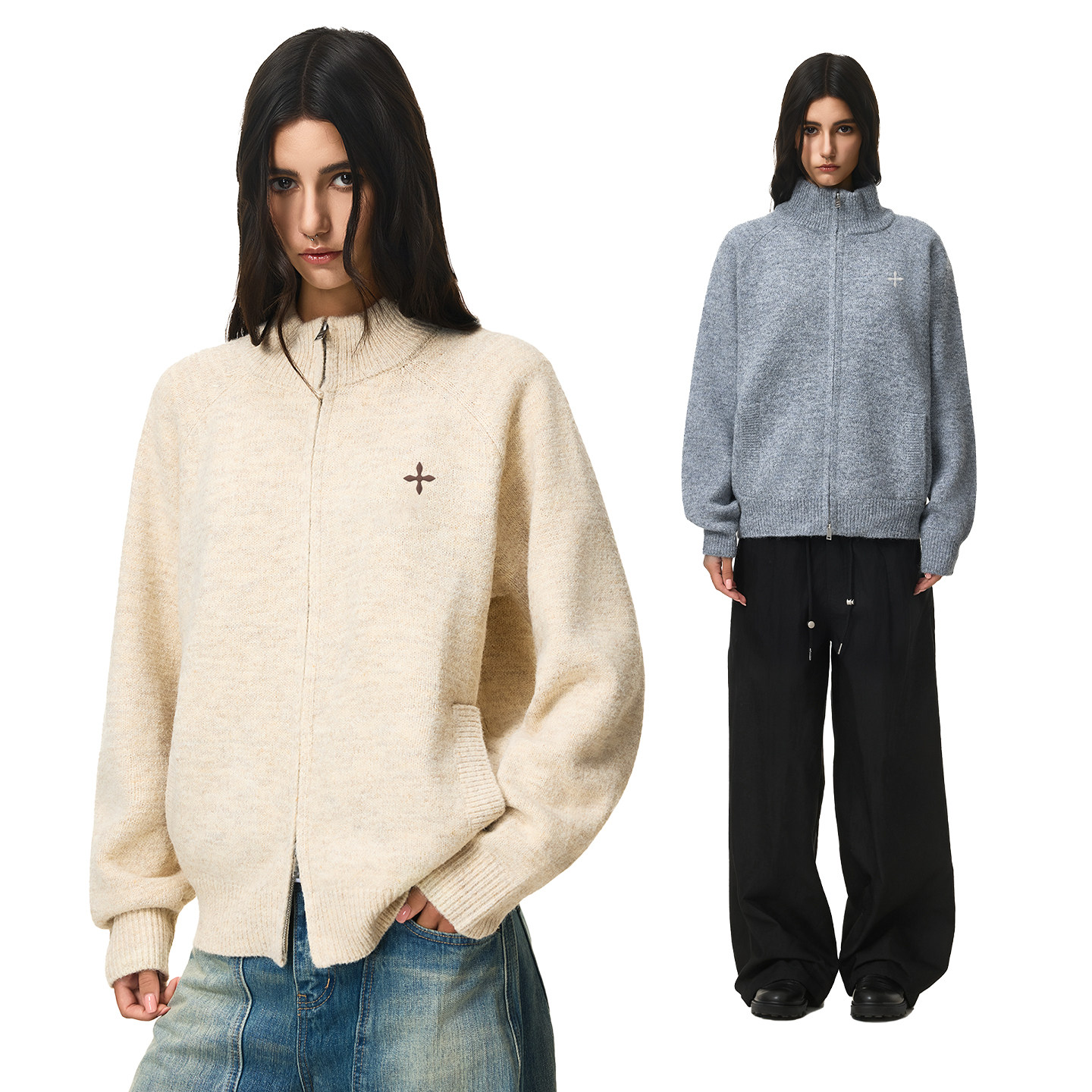 FORNINES慵懒松弛感含羊毛圆领针织开衫男女秋冬宽松休闲毛衣外套