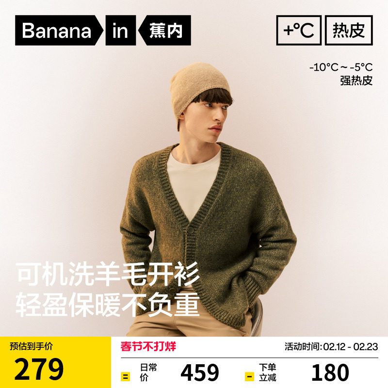 蕉内热皮503+++男士锁温开衫毛衣保暖宽松休闲羊毛针织衫外套新款