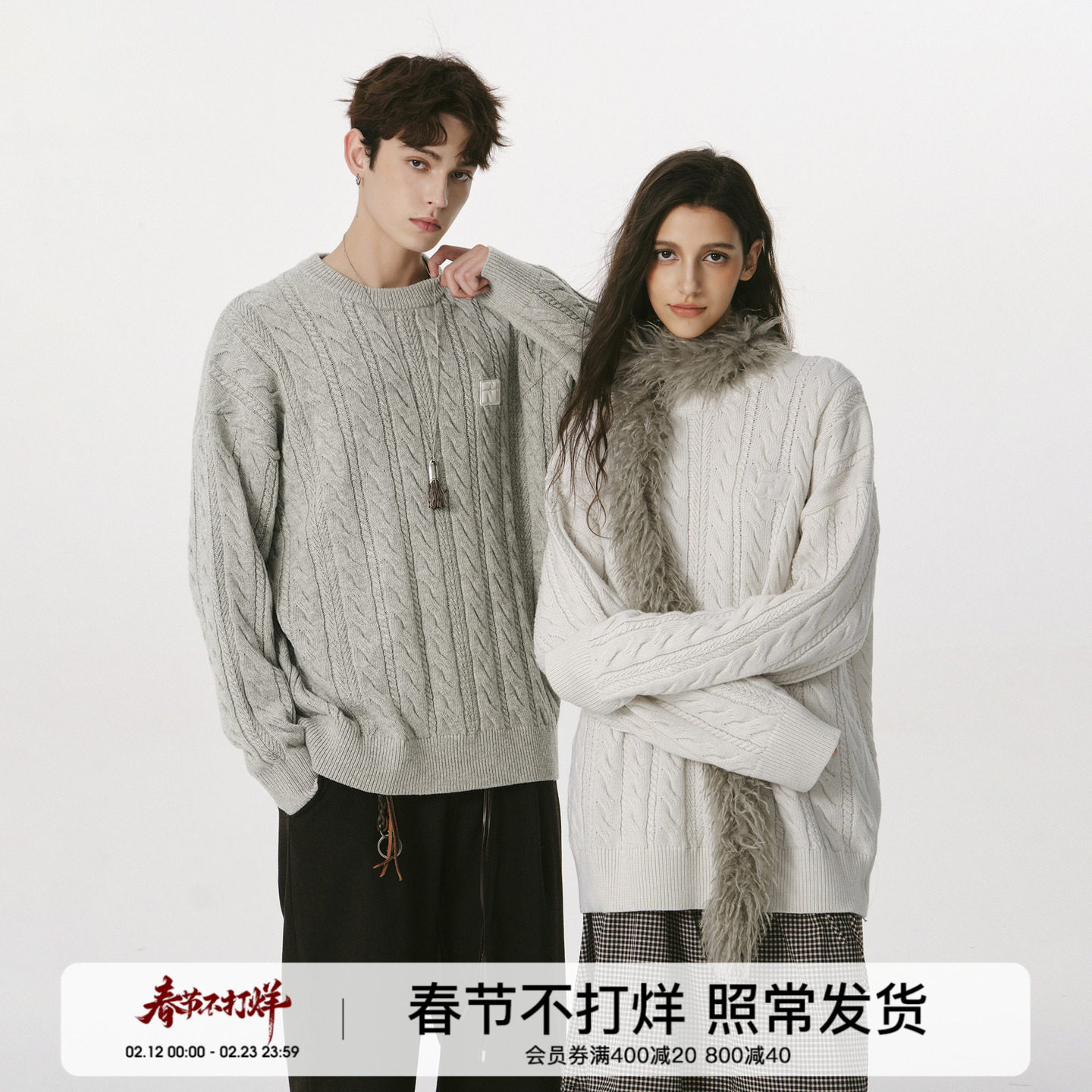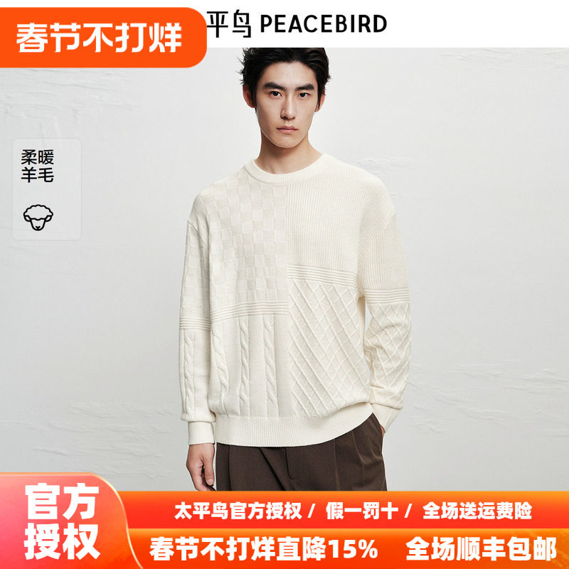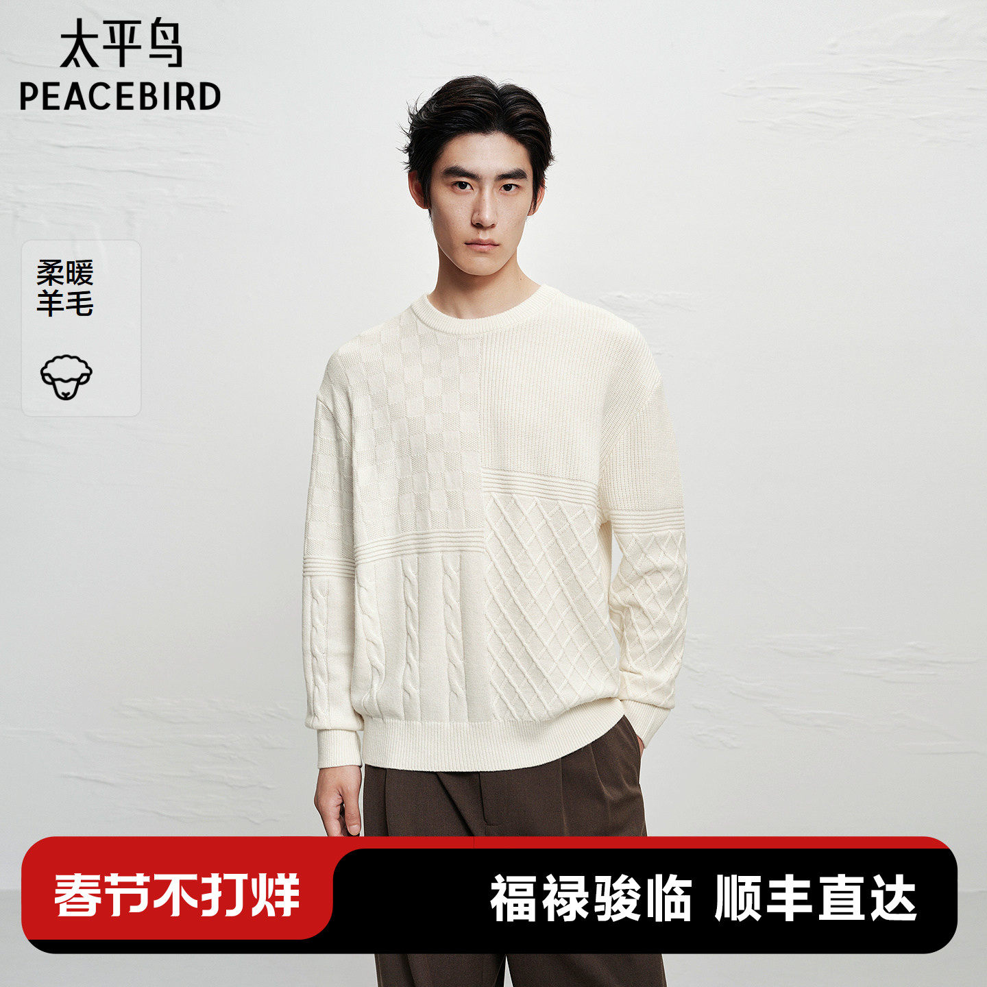 太平鸟男装毛衫25冬新款圆领绞花宽松羊毛衫男休闲毛衣BAEBF423F