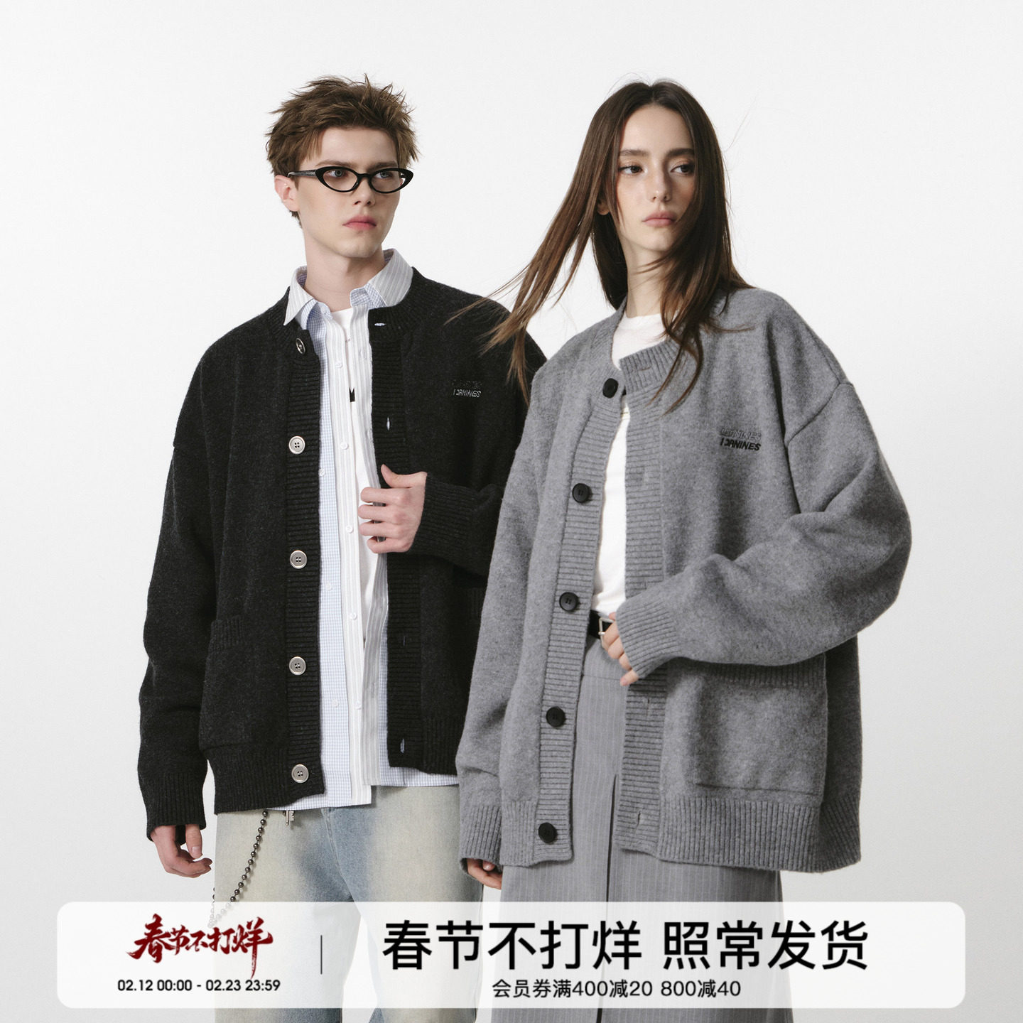 IDLT 宽松 羊毛圆领纽扣针织开衫落肩外套男女简约cleanfit街头潮