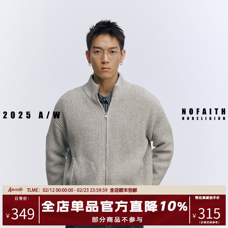 NOFAITH双拉链羊毛立领竖纹开衫毛衣男秋冬款老钱风宽松针织外套