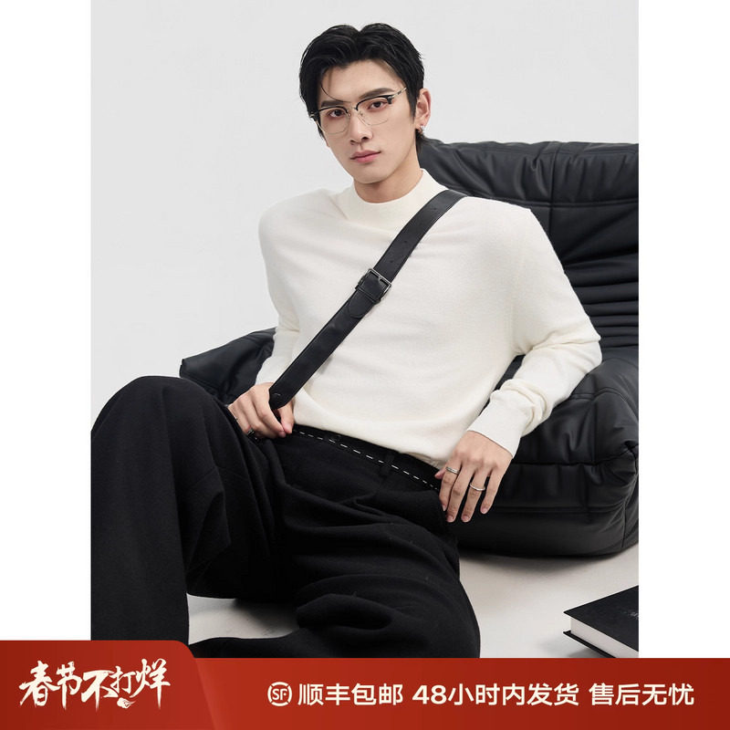 秋冬新款100%纯羊毛衫男士半高领套头针织毛衣休闲宽松打底羊绒衫
