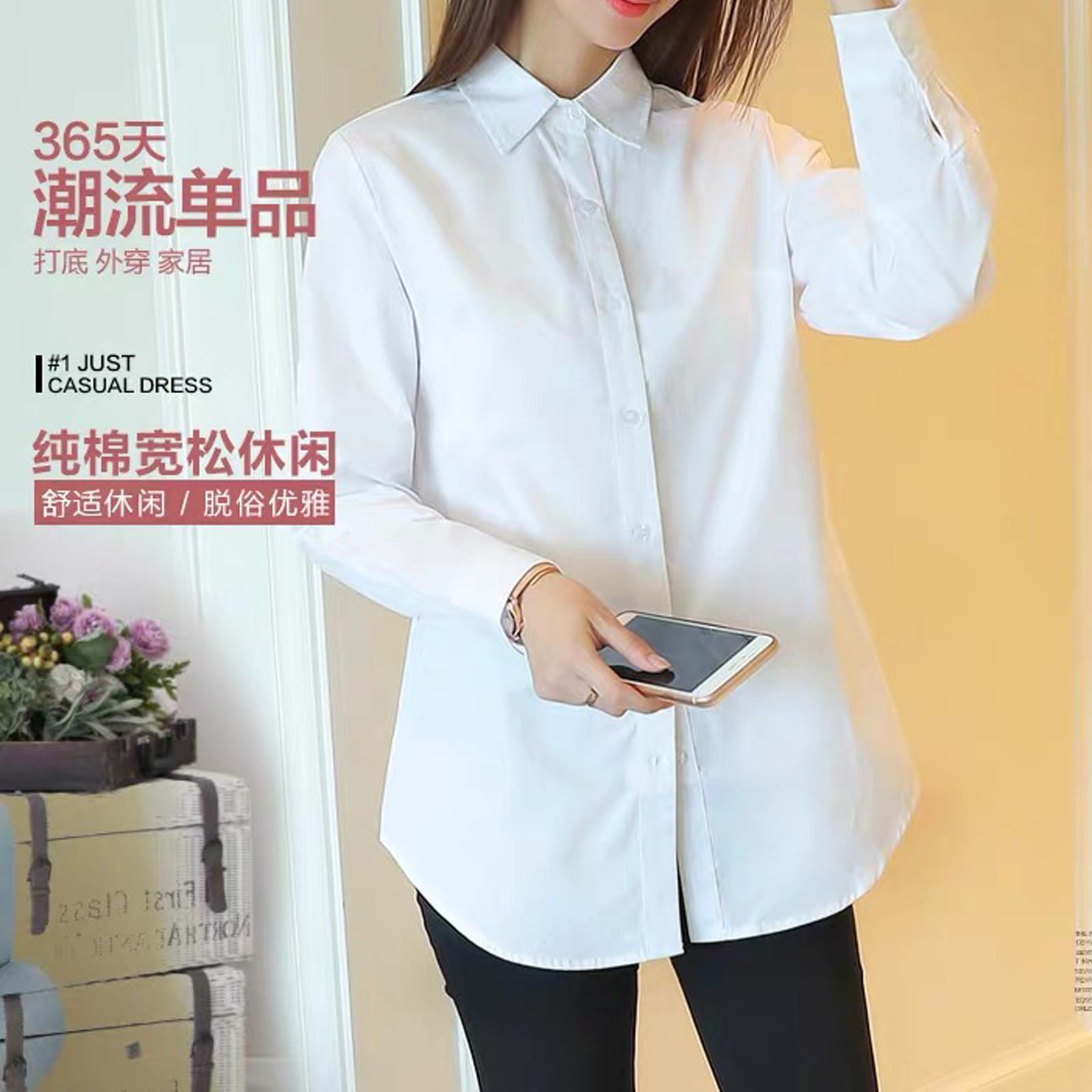 纯棉白衬衫 女 中长款[第9名]