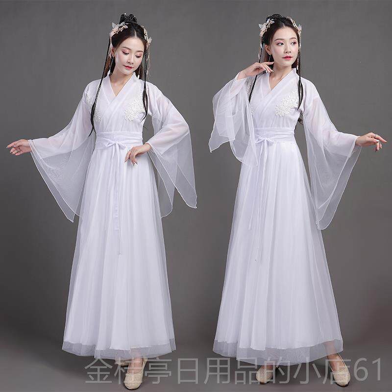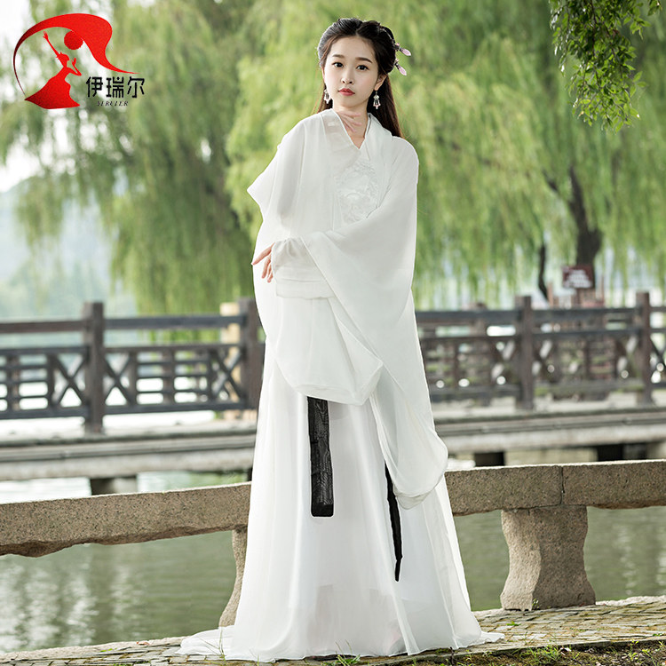 唐朝汉服襦裙白色清新雪纺飘逸仙女小龙女影楼写真拖尾古装临江仙