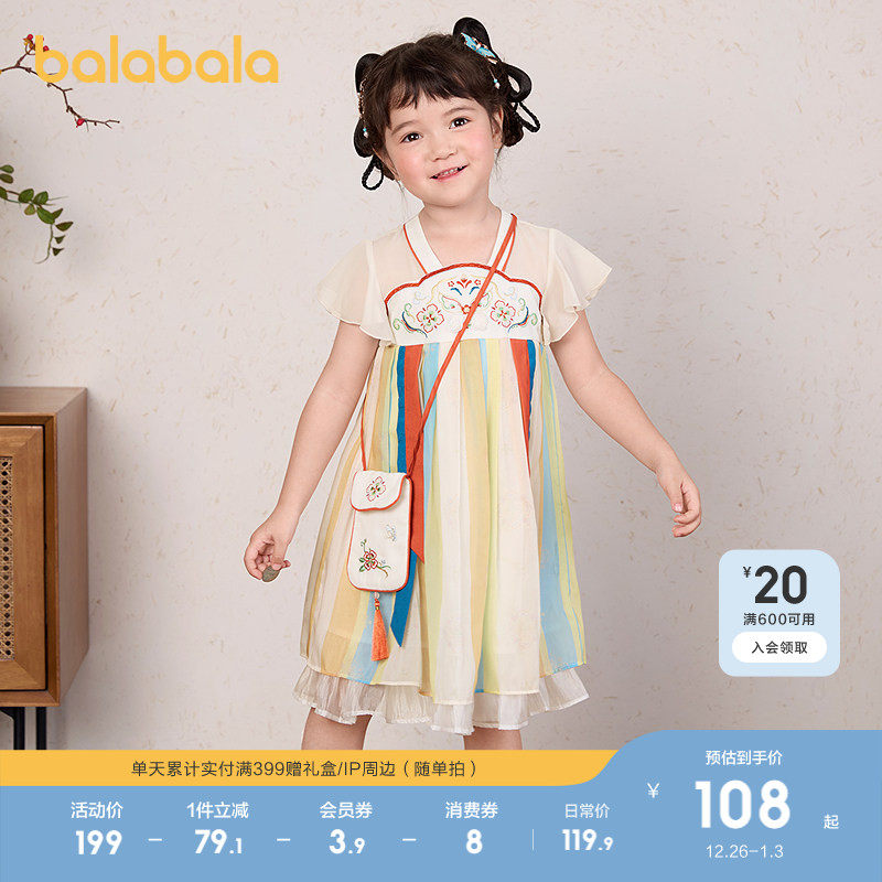 巴拉巴拉童装女童国风裙子连衣裙夏季刺绣汉服襦裙精致刺绣新中式