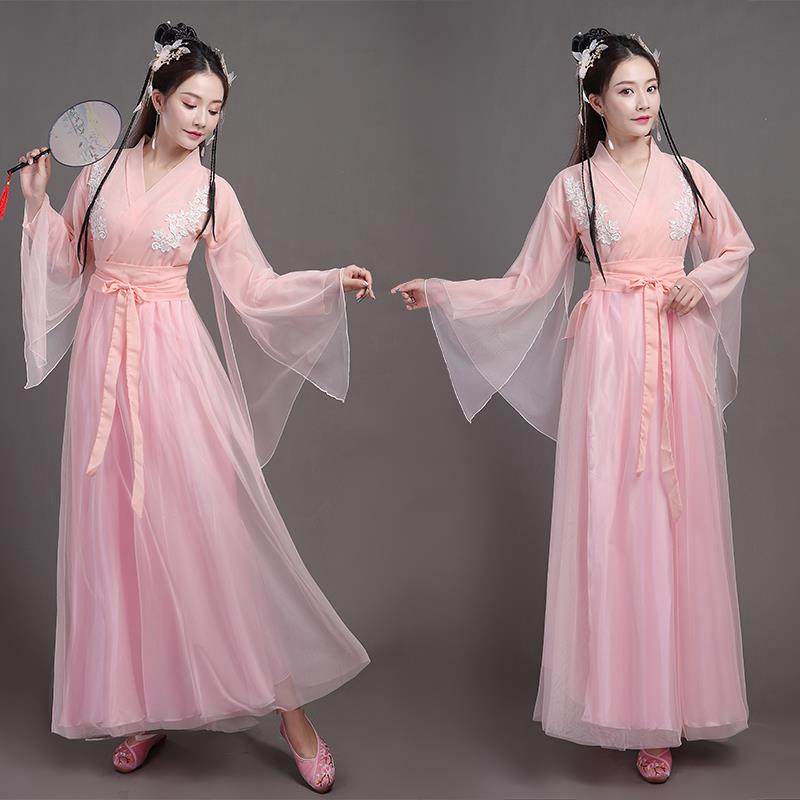 正品古装女汉服襦裙仙粉色清新淡雅仙气服古春风广女袖原创演出装