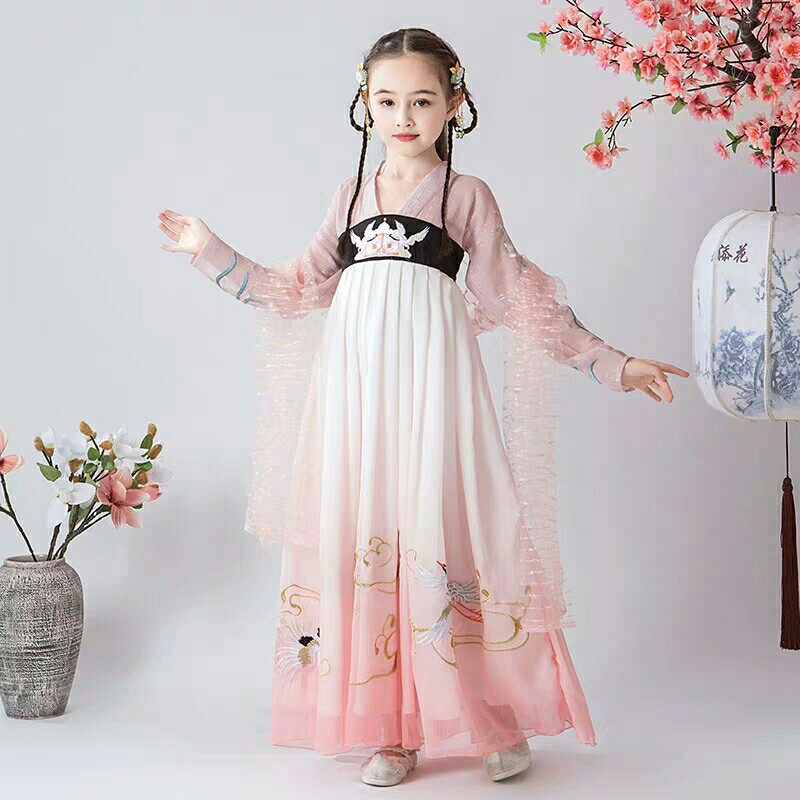 新款儿童执镜佣表演服女童汉服襦裙汉唐装演出服中国风古典舞服装