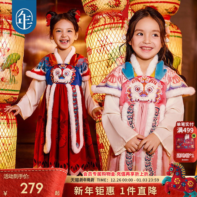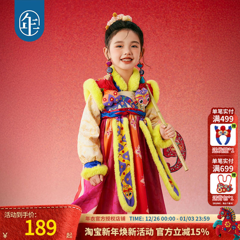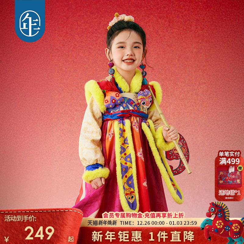 AGLFLIN儿童汉服襦裙女童秋冬款连衣裙加绒加厚拜年服女孩公主裙