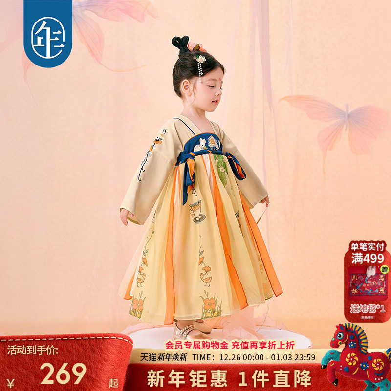 年衣童装女童玉兔汉服春秋超仙国风唐装连衣裙儿童公主裙汉服襦裙