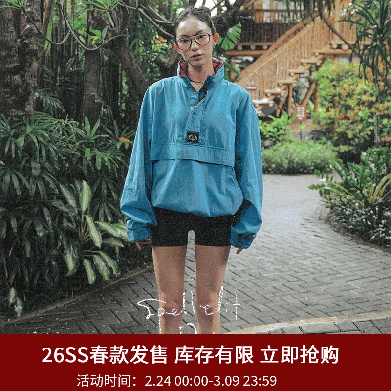 SPELLEDIT2026年春季新品复古半拉链外套撞色宽松休闲女装上衣