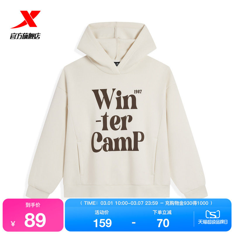 特步连帽卫衣女2025年官方冬季休闲女装长袖运动上衣976428930274