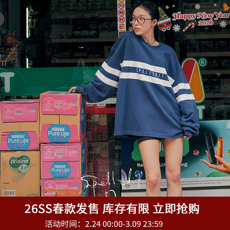 SPELLEDIT2026春季新品双条带卫衣韩版宽松休闲女装简约复古风
