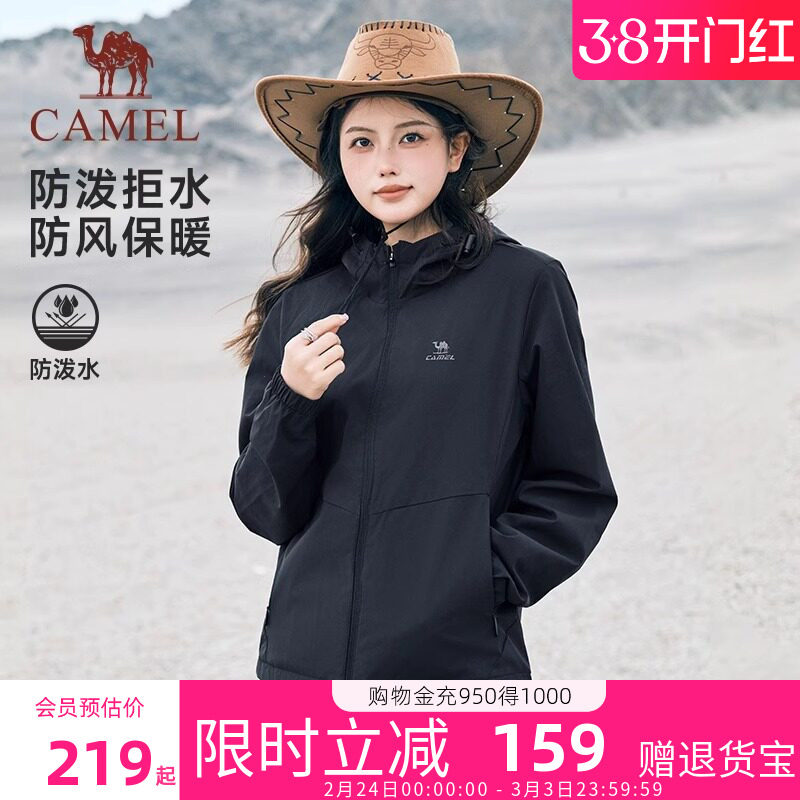 骆驼运动外套女2026秋冬新款连帽风衣防水防风薄绒休闲女装夹克