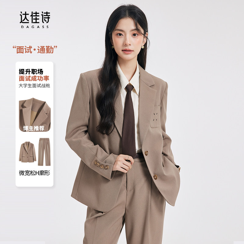 达佳诗卡其色西装套装女大学生西服外套高级女式职业正装休闲女装