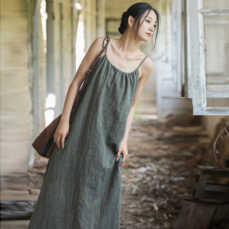 围裹吊袜带半身裙春季高级感仙气苎麻长款宽松复古气质休闲女装裙