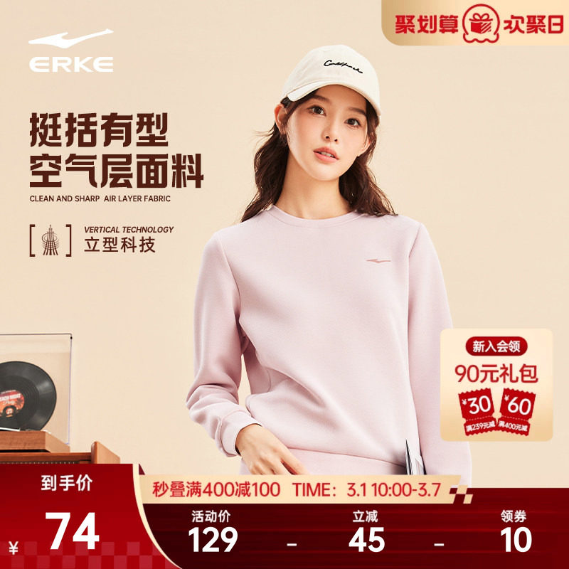 鸿星尔克卫衣女春季新款女士运动服圆领长袖套头上衣休闲女装衣服