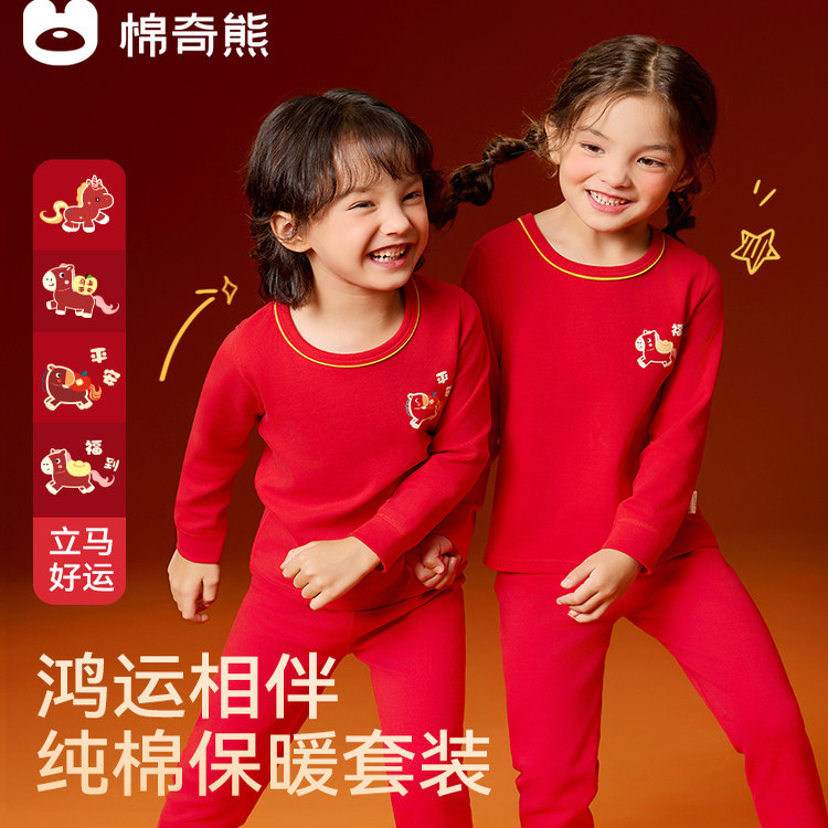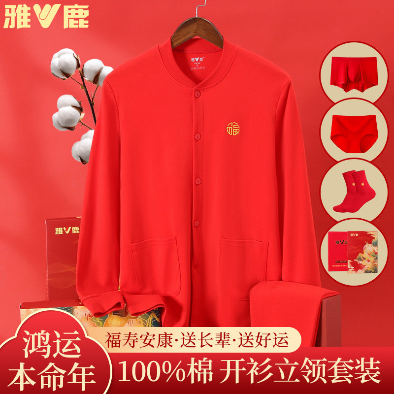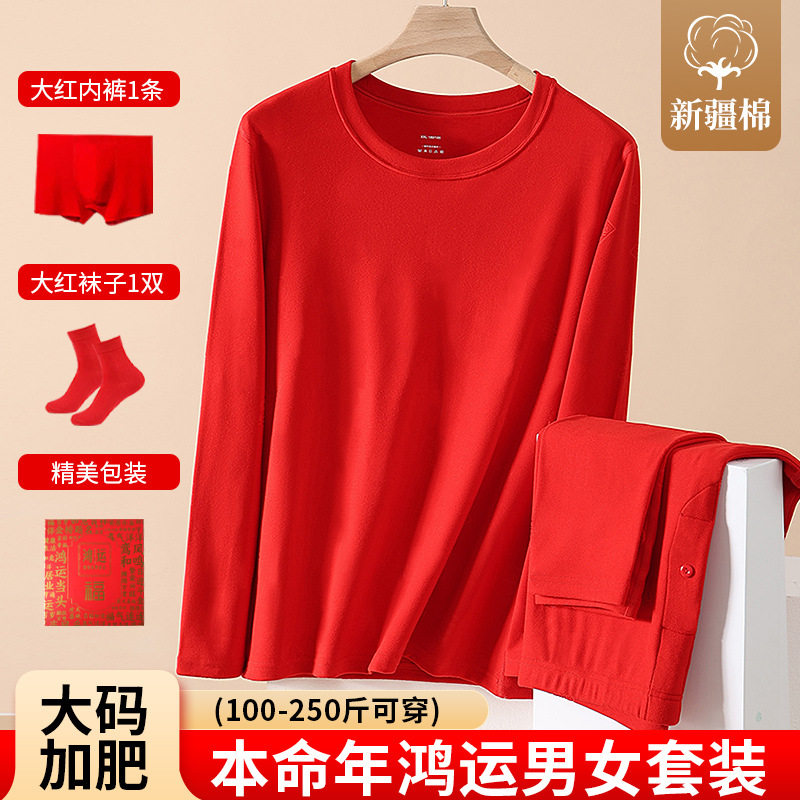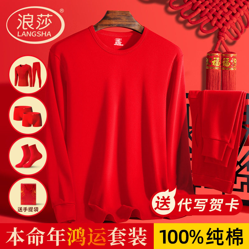 - 男大红秋衣秋裤套装