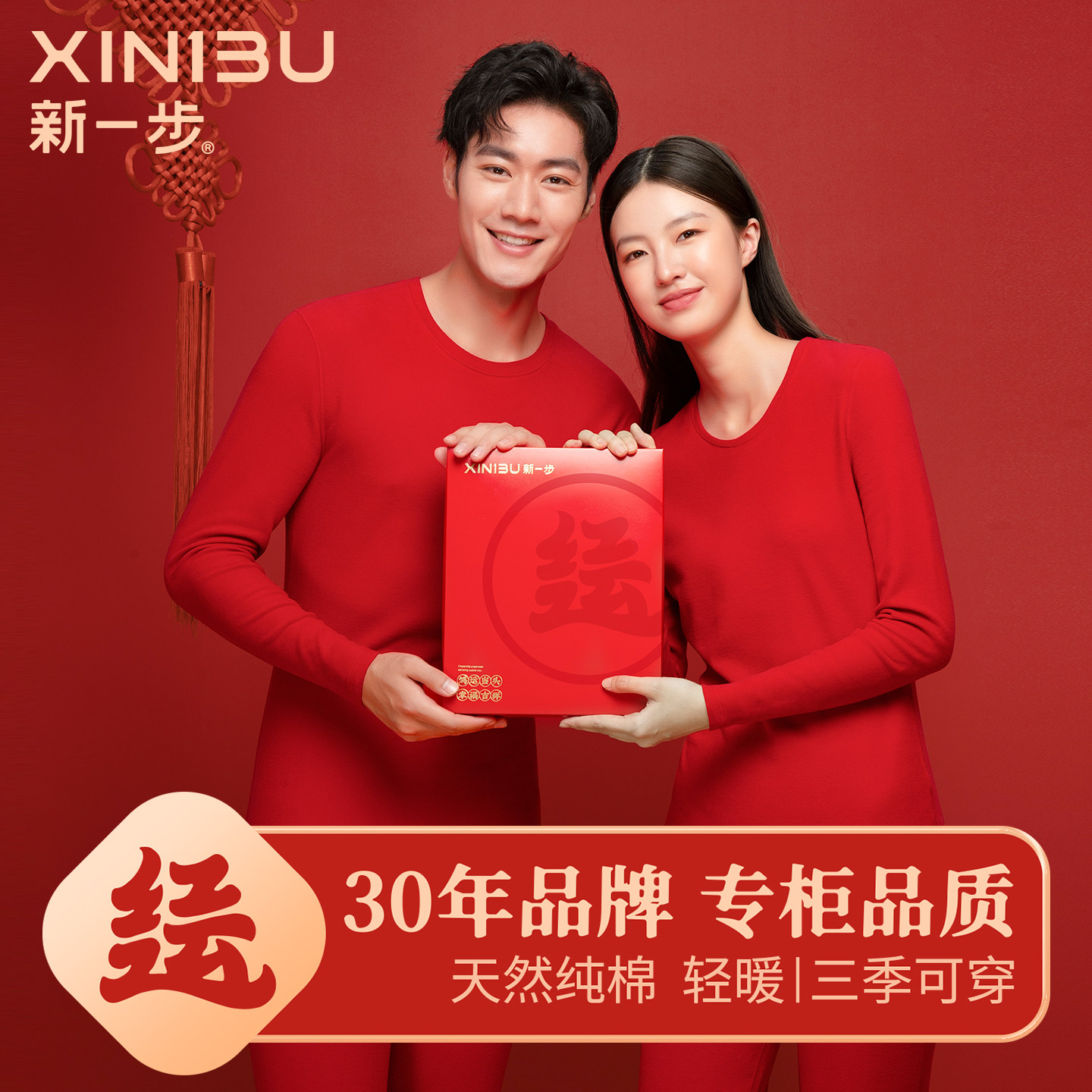 - 男秋衣秋裤套装全棉红