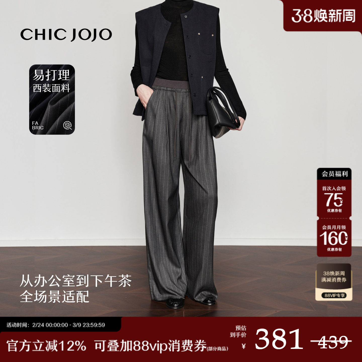 【菁英下午茶】条纹阔腿裤丨CHICJOJO灰色休闲裤女26春新款西装裤
