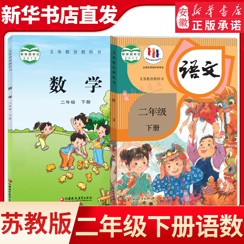 新华书店官网正版 二年级下册语文数学课本教材书人教版小学2二年级数学书下册苏教版 2本课本教科书教材第二学期下语文数学书籍