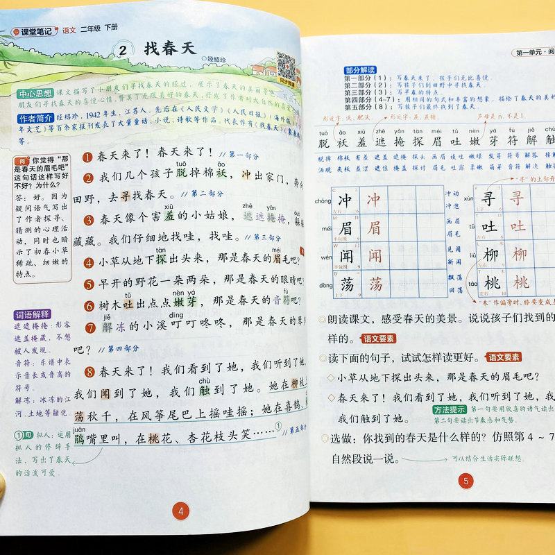 2026人教版语文新课堂笔记2二年级下册语文数学教材讲解读课文批注生字注音词语解释近反义词案例解析课本提前预复习备案教辅荣恒