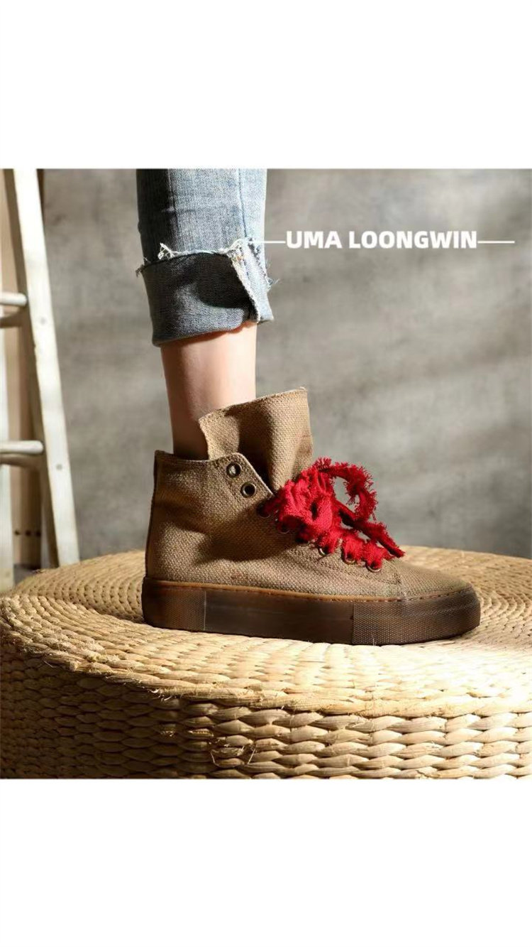 UMA LOONGWIN暗黑高帮绿色帆布休闲厚底增高宅系板小白鞋休闲情侣