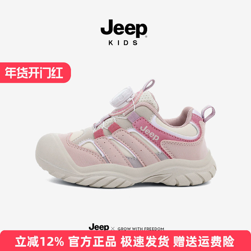Jeep儿童轻便运动鞋春秋中大童跑步女童2025新款男童纽扣鞋子春款