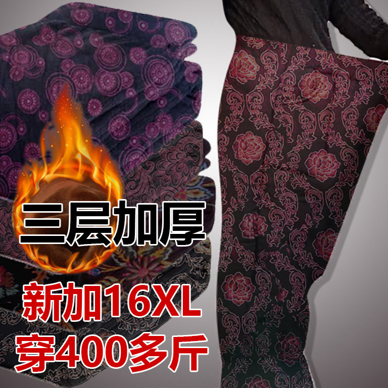 胖mm秋裤女200斤高腰薄绒冬保暖裤加肥加大码300斤中老年妈妈棉裤