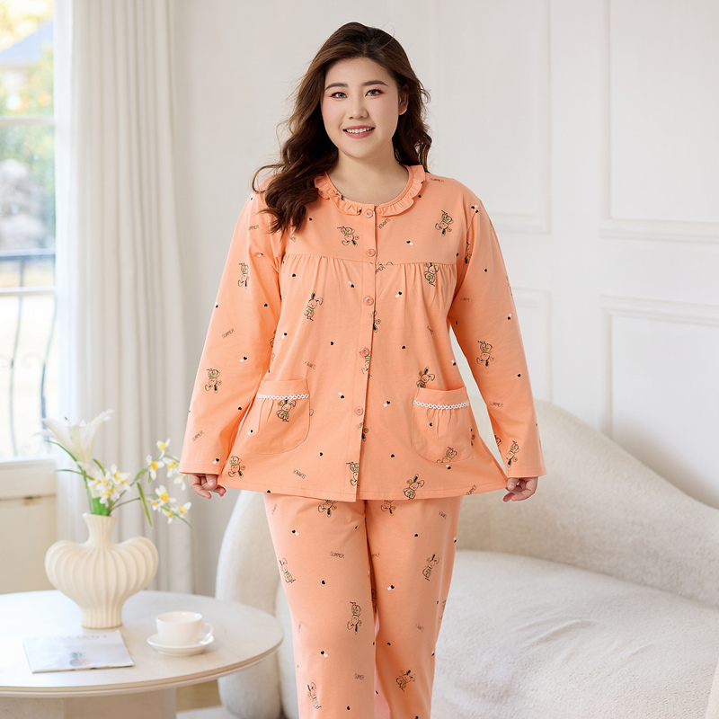 妈妈睡衣春秋2025新款纯棉纱布长袖套装胖mm加肥加大码宽松家居服