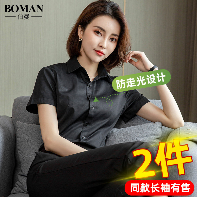 竹纤维黑色衬衫女士长袖职业正装2026春秋新款短袖白衬衣打底百搭