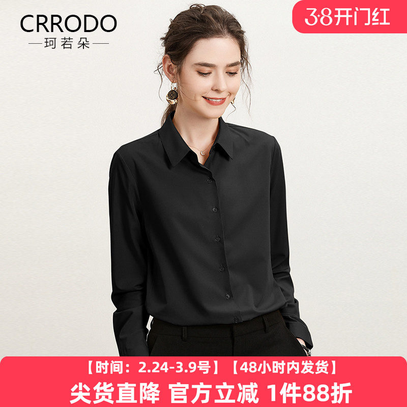 黑色衬衫女长袖职业轻奢高级感抗皱工装正肩暗门襟polo领显瘦衬衣