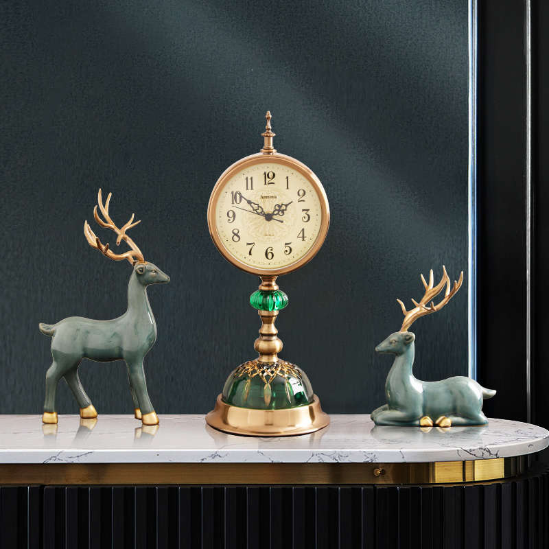 轻奢台式钟表座钟家用时尚客厅简约欧式电视柜摆件时钟静音石英钟