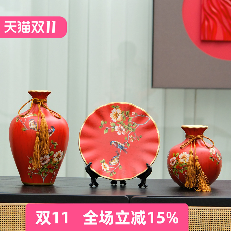 创意摆件欧式花瓶三件套家居新婚房摆设客厅电视柜玄关装饰品礼品
