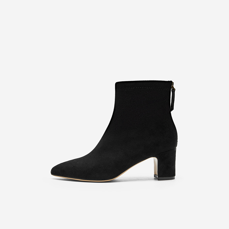2025秋冬新款短靴女磨砂皮中跟粗跟短筒裸靴绒面尖头拉链加绒女鞋