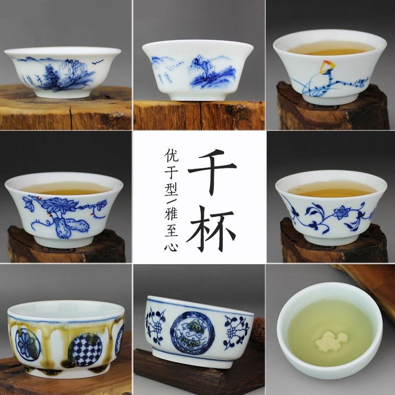 特价茶杯陶瓷功夫茶具品茗杯青花主人杯单杯手绘白瓷紫砂杯子茶盏
