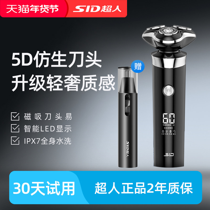 超人剃须刀电动刮胡刀10W大功率智能剃胡刀胡须刀送男友官方正品