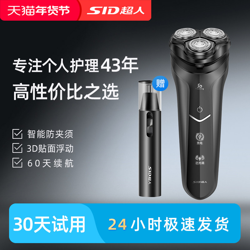 超人剃须刀男电动大胡子单头圆头充电式刮胡子刮胡刀便携官方旗舰