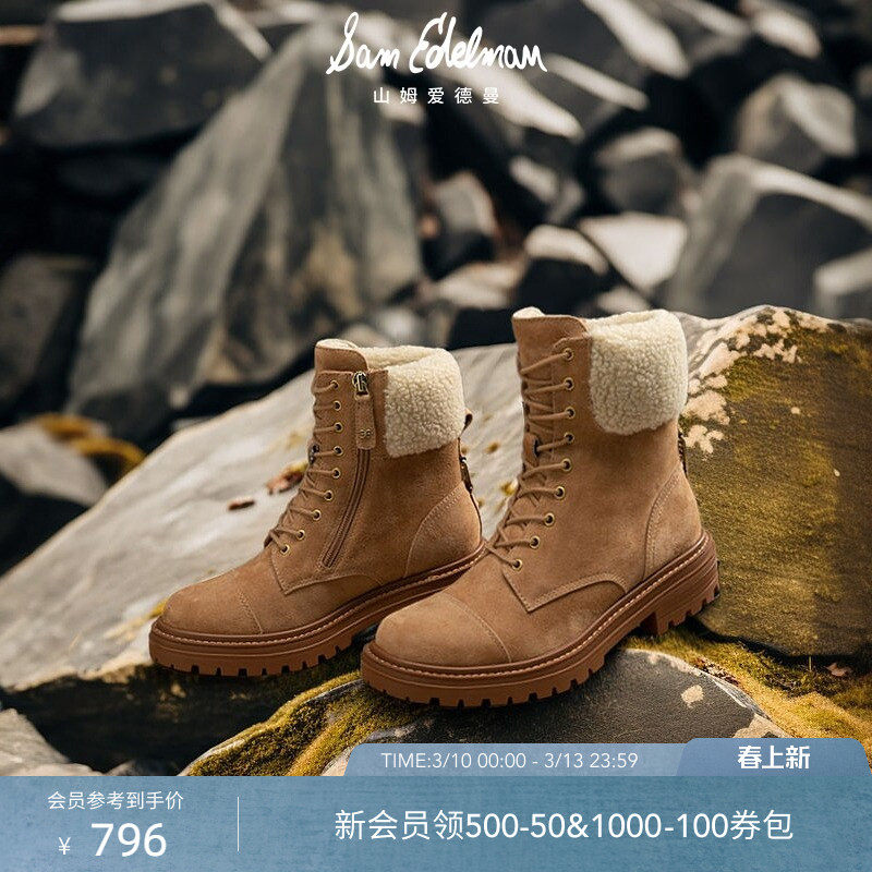 明星同款SAM EDELMAN山姆爱德曼冬加绒马丁大黄靴羊皮短靴女ALEIA