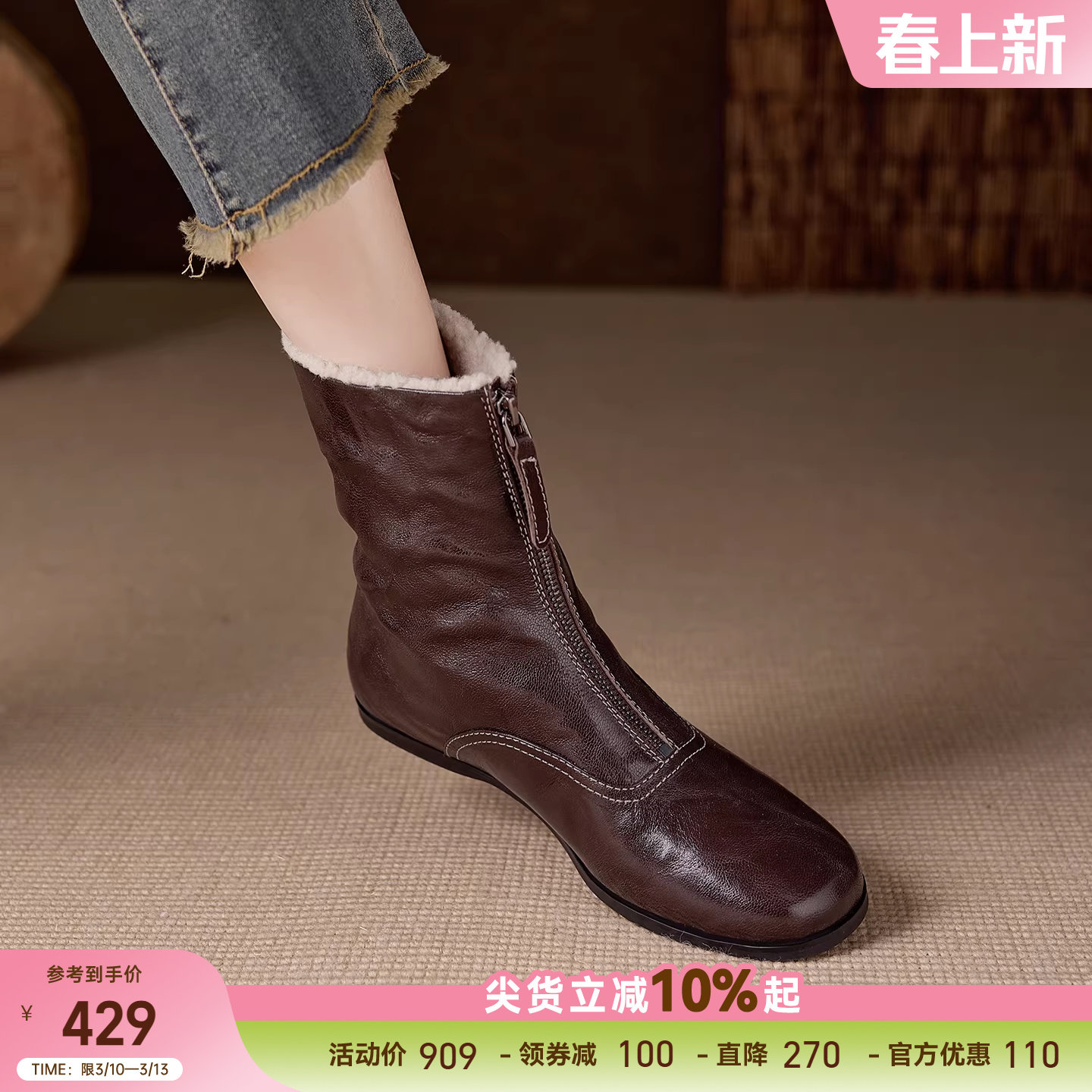 - 钱夫人CHINSTUDIO定制 百搭必入 雪梨的简约率性做旧小短靴