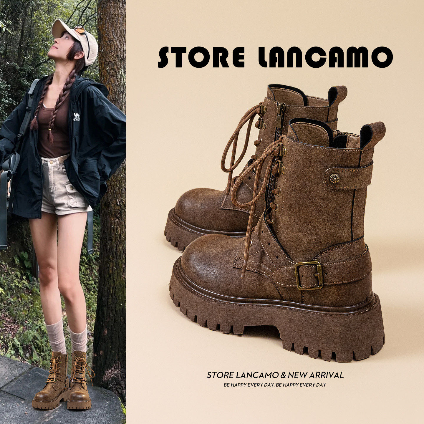【明星同款】Lilbetter马丁靴女春新款短靴复古工装厚底大黄靴男