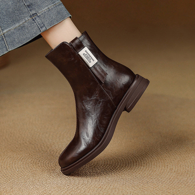 - 女短靴秋皮