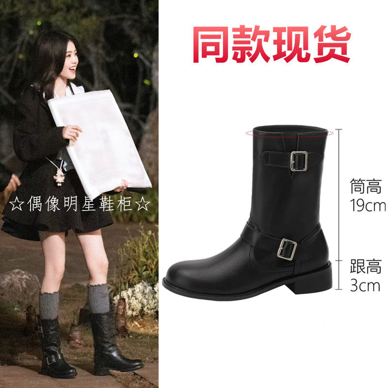 亲爱的客栈白鹿同款靴子皮带扣马丁靴2026百搭厚底中筒靴女鞋短靴