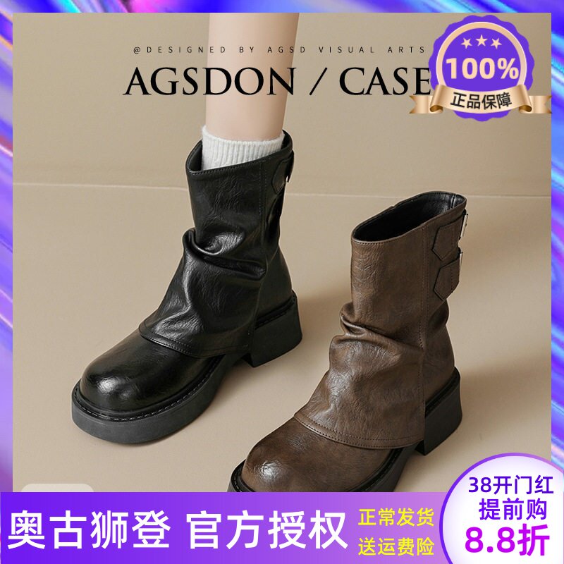 【明星同款】星期六厚底短靴女真皮靴侧拉链时装鞋冬季加绒马丁靴