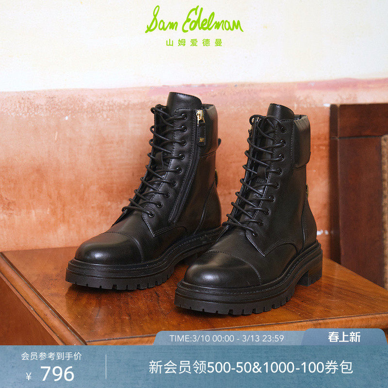 明星同款SAM EDELMAN山姆爱德曼冬季黑圆头粗跟马丁靴短靴女ALEIA