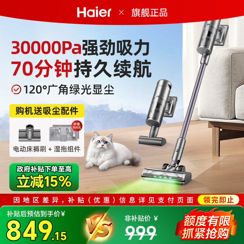 海尔无线吸尘器家用大吸力手持式强力猫毛吸尘机吸拖一体25年新款