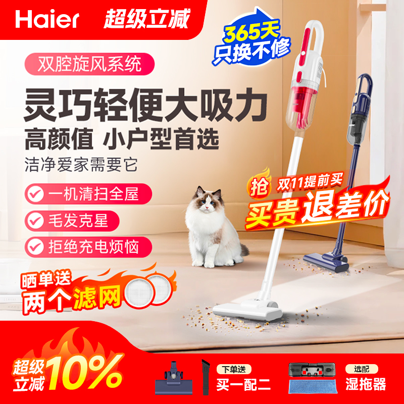 海尔吸尘器家用小型强大吸力手持轻音吸尘机吸猫毛宠物吸拖一体机