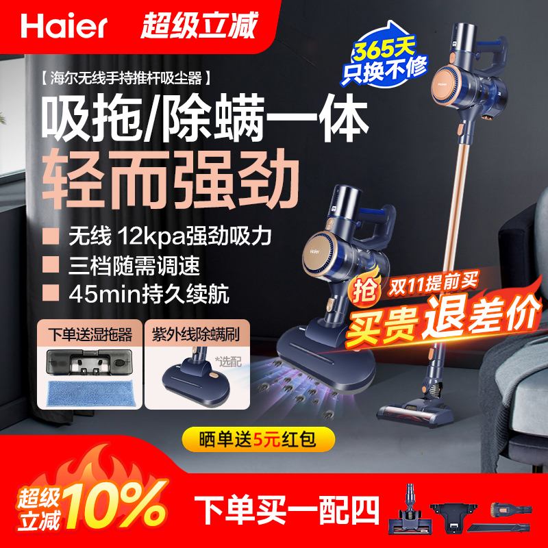 海尔无线吸尘器家用大吸力小型除螨仪大功率强力吸拖地一体吸尘机