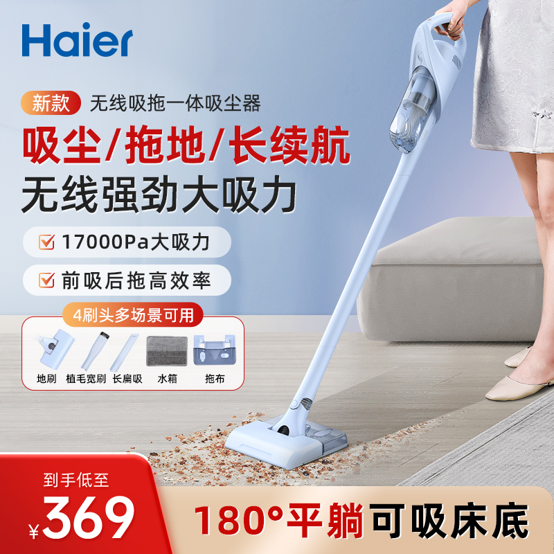 海尔吸尘器家用大吸力手持无线强力除螨吸尘机洗地机吸拖地一体机