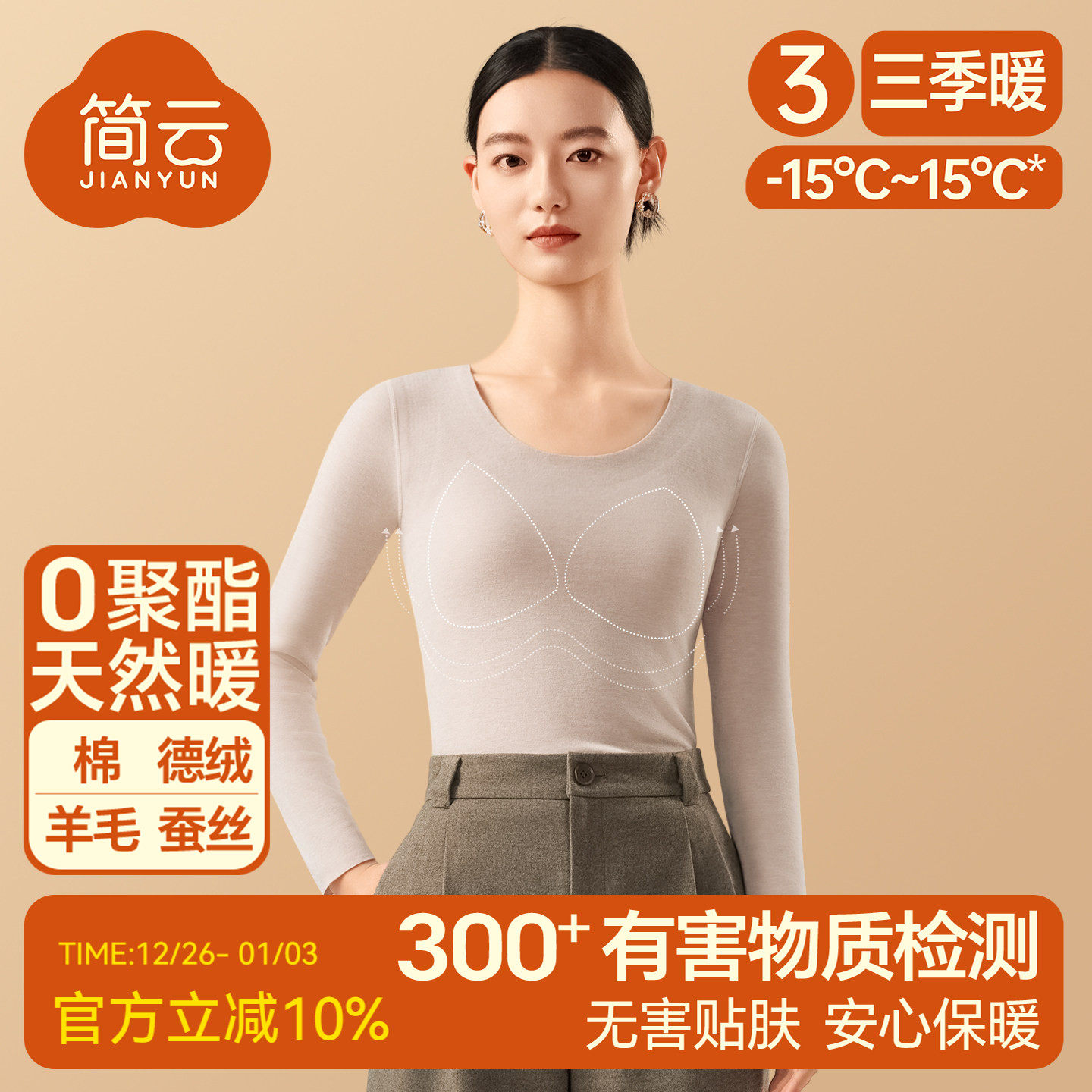 简云德绒羊毛保暖内衣女带胸垫免穿文胸上衣秋衣蚕丝T恤打底衫冬